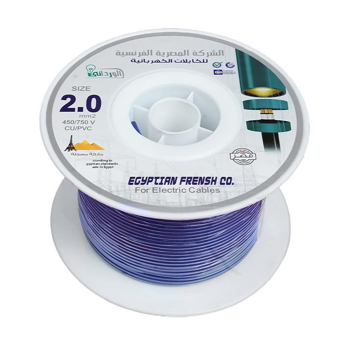 سلك نحاس نقي مغطى بطبقة عازلة بلاستيك (PVC) بقطر 2مللى، تستخدم هذه الأسلاك بشكل واسع في العديد من التوصيلات الكهربائية والإلكترونية، وتوصيل الاجهزه المنزلية والمعدات