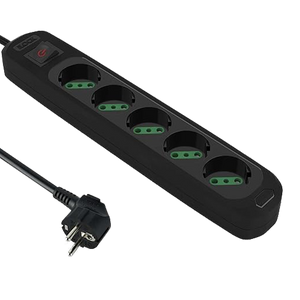 عدد المنافذ: 5 منافذ كهربائية (عين)، مما يسمح بتوصيل 5 أجهزة تعمل بالتيار المتردد (AC) في وقت واحد.